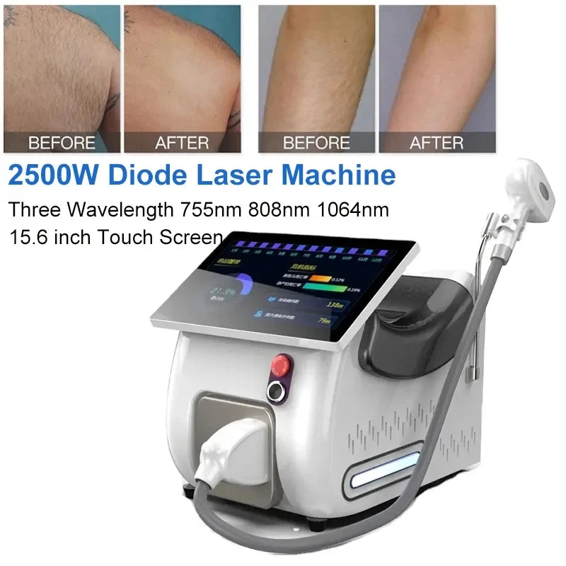 أحدث جهاز إزالة الشعر بالليزر 2 في 1 مقاس 15.6 بوصة، 755 نانومتر و808 نانومتر و1064 نانومتر، 3 أطوال موجية، جهاز تجميل احترافي بقوة 2500 وات بمقبض واحد أو مقبضين