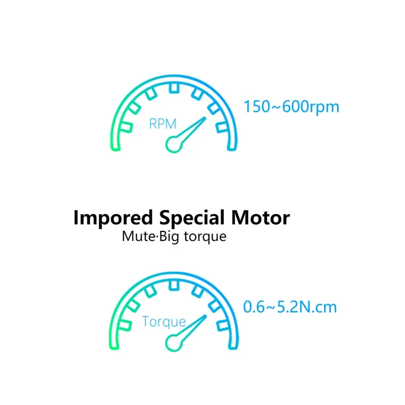 - Einstellbares Drehmoment und Geschwindigkeit: Drehmomentbereich von 0,6–5,2 N.cm und Drehzahl von 150 U/min bis 650 U/min für vielseitigen Einsatz.