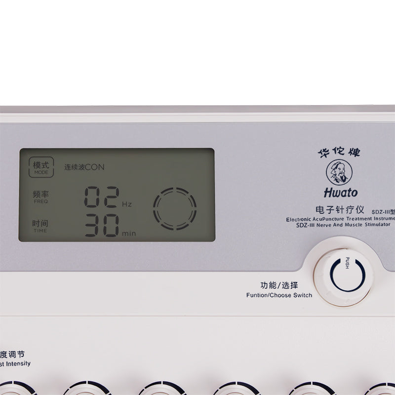 Der Hwato SDZ-III Nerven- und Muskelstimulator kombiniert moderne Mikrocomputertechnologie mit traditioneller chinesischer Akupunktur und Meridiantheorie und bietet einen revolutionären Ansatz zur Schmerzlinderung und Muskelstimulation. Dieses fortschrittliche Gerät ist so konzipiert, dass es niederfrequente Impulse abgibt, um Akupunkturpunkte am menschlichen Körper zu stimulieren und so Entspannung, Schmerzlinderung und allgemeines Wohlbefinden zu fördern.