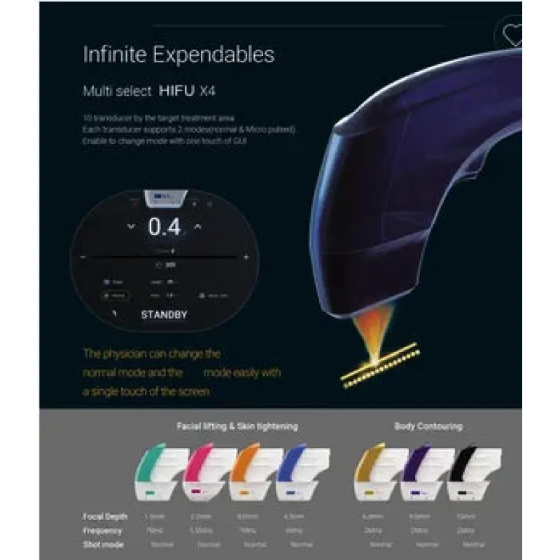 Discover the ultimate solution for non-invasive facial rejuvenation and body contouring with the 10D HIFU Face Lift Machine. This advanced device utilizes High-Intensity Focused Ultrasound (HIFU) technology to deliver precise and effective treatments for skin tightening, wrinkle reduction, and body slimming. With 3 handles and 10 cartridges, this machine offers versatility and efficiency, making it ideal for both professional and personal use.