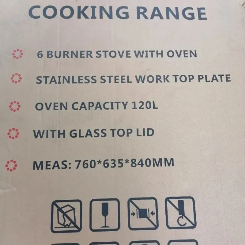 Introducing the 120L 6-Burner Gas Stove with Oven, a powerful and versatile freestanding gas cooker designed for both home kitchens and professional restaurant settings. This high-performance gas stove features six burners with strong fire power, ensuring quick and efficient cooking. The built-in oven provides ample space for baking, roasting, and more, making it a perfect all-in-one solution for your culinary needs.