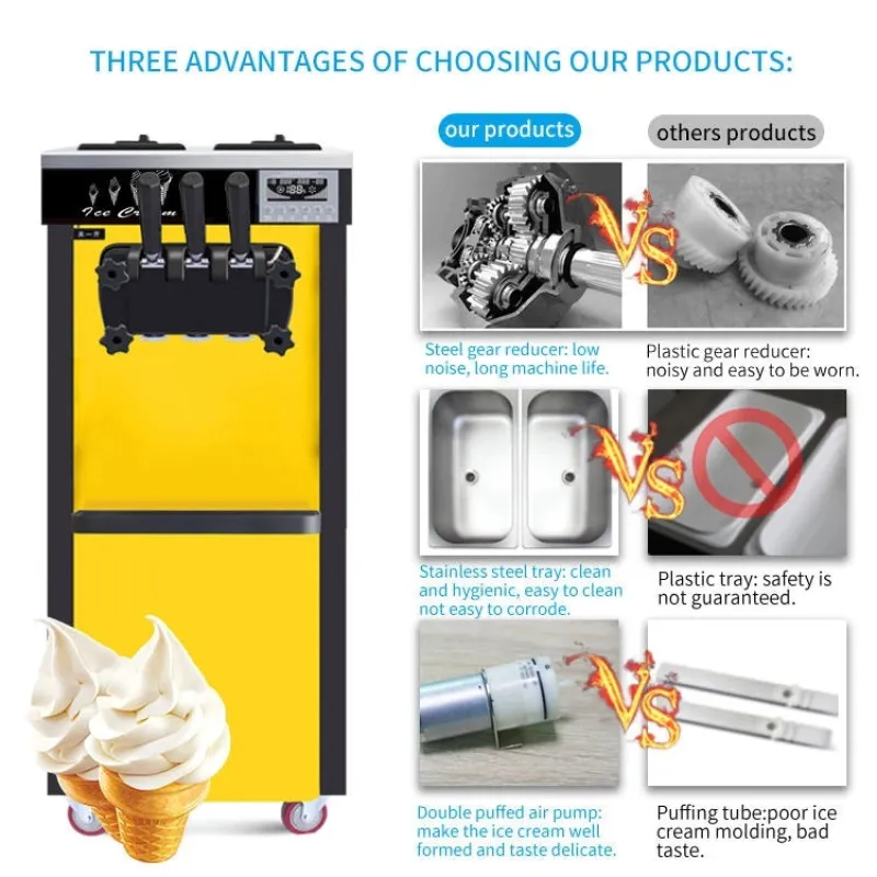 - Ideal for hotels, restaurants, and food shops looking to offer a variety of soft serve ice cream flavors.