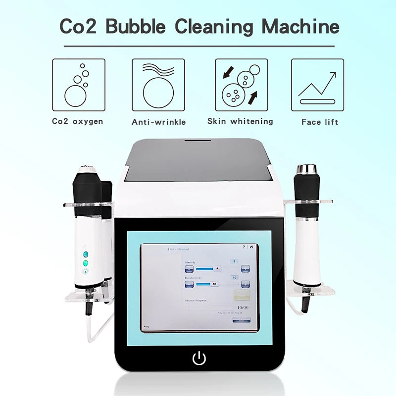 Experience the ultimate skin rejuvenation with our 3-in-1 CO2 Oxygen Bubble RF Ultrasonic Skin Care Machine. This advanced beauty device combines CO2 oxygen therapy, RF (Radio Frequency) technology, and ultrasonic waves to deliver deep skin hydration, exfoliation, and anti-aging benefits. Inspired by natural hot springs, the CO2 oxygen therapy triggers the body's natural response to send oxygen to the treated area, promoting cell metabolism and skin repair. The RF technology stimulates collagen and elastin regeneration, leading to smoother, tighter skin with reduced fine lines and wrinkles. The ultrasonic waves enhance the penetration of skincare products, ensuring maximum absorption for a radiant, youthful complexion.