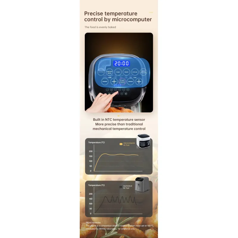 Equipped with advanced air frying technology, this appliance uses hot air circulation to cook food evenly, ensuring a crispy exterior and tender interior without the need for excessive oil. Whether you're frying, grilling, baking, or roasting, this multi-functional device can handle it all, making it an indispensable tool for any kitchen.