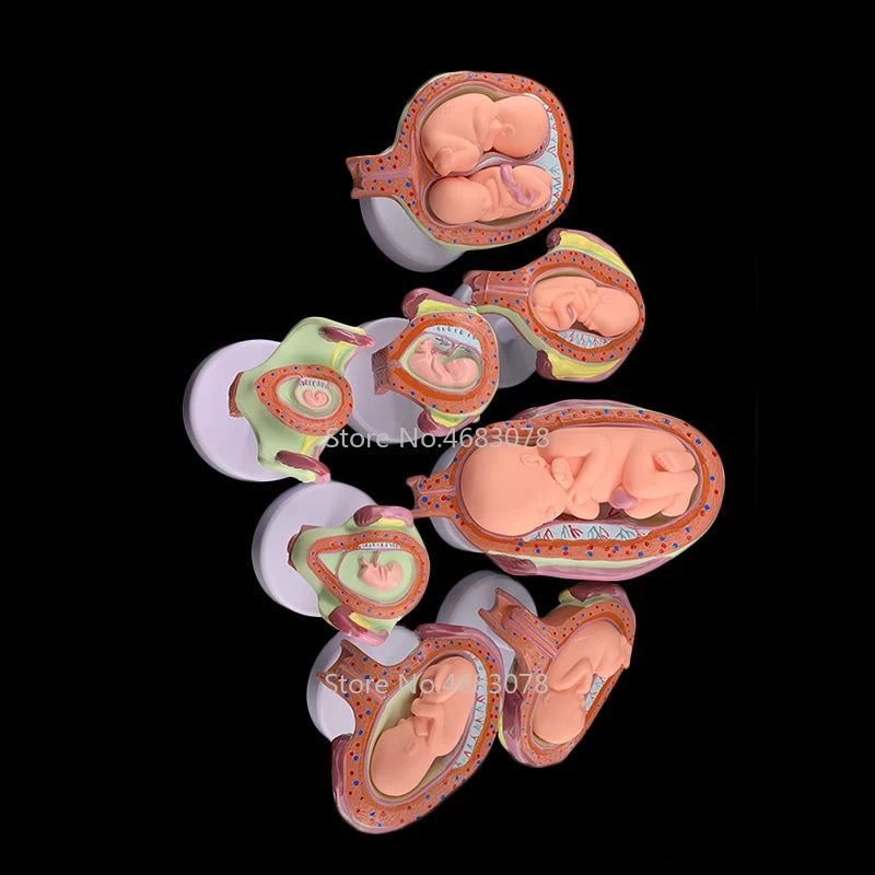 Each model in this set is crafted from high-quality PVC, ensuring durability and accurate representation of fetal anatomy. The set includes eight detailed models, each representing a different stage of fetal development, complete with bases for clear demonstration and study.
