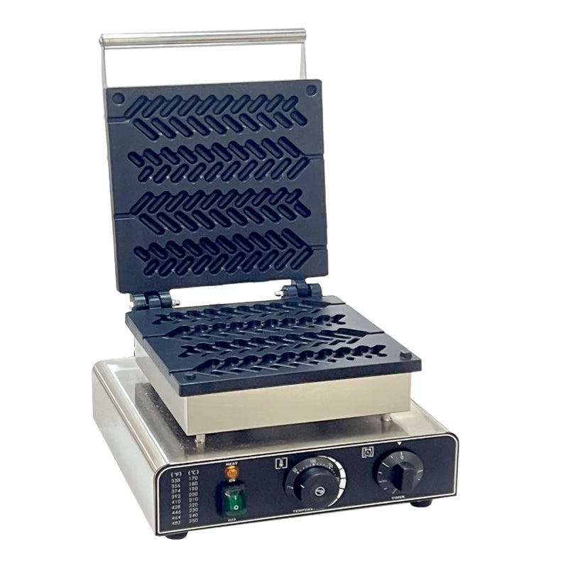 Introducing the Commercial 4 Pcs Lolly Waffle Sticks Machine, the ultimate solution for creating delicious, trendy waffle sticks with ease. This industrial-grade electric waffle maker is designed for both commercial and home use, offering a luxurious design with independent timer and thermostat controls for precise baking. Perfect for making lolly waffles, Christmas tree waffles, and other creative waffle desserts, this machine is a must-have for any snack food business or home kitchen.