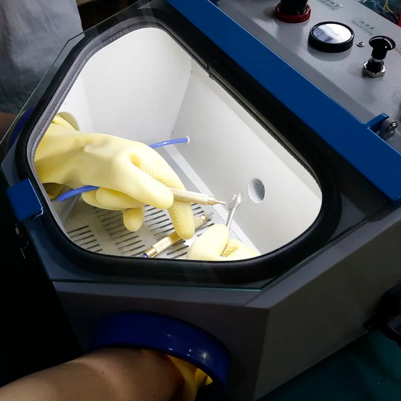 This advanced dental sandblasting machine features a double-pen design, allowing for simultaneous operation and increased efficiency. It is specifically engineered to handle delicate dental prosthetics, providing a smooth and oxide-free surface that enhances the bonding process. The machine is also capable of casting glass beads onto plastic bases, making it a versatile addition to any dental lab.