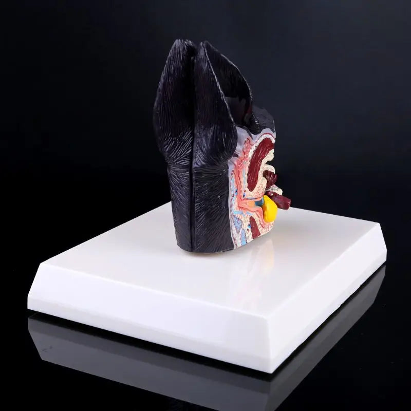 Our Dog Ear Lesion Anatomical Model is crafted from non-toxic, environmentally friendly PVC material, ensuring durability and lightweight handling. The model features two distinct sides: one side showcases various ear lesions, including fungi, parasites, hills, and crusting rash, while the other side presents a healthy ear model for comparison. This dual-sided design is perfect for veterinary anatomical study, training for dissection, and pet owner education or demonstration of procedures.