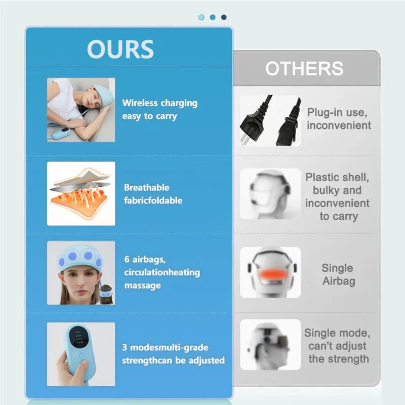 Electric Air Pressure Head Massager with Heat - 3 Modes, 360° Full Head Wrap, Portable & Rechargeable for Migraine, Insomnia, and Headache Relief