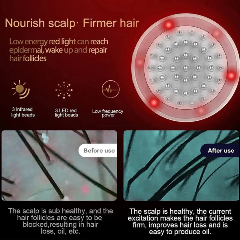 • Advanced Technology: Utilizing EMS, red LED light, and vibration technology, this comb promotes blood circulation, relaxes the brain, and enhances the absorption of hair care products.