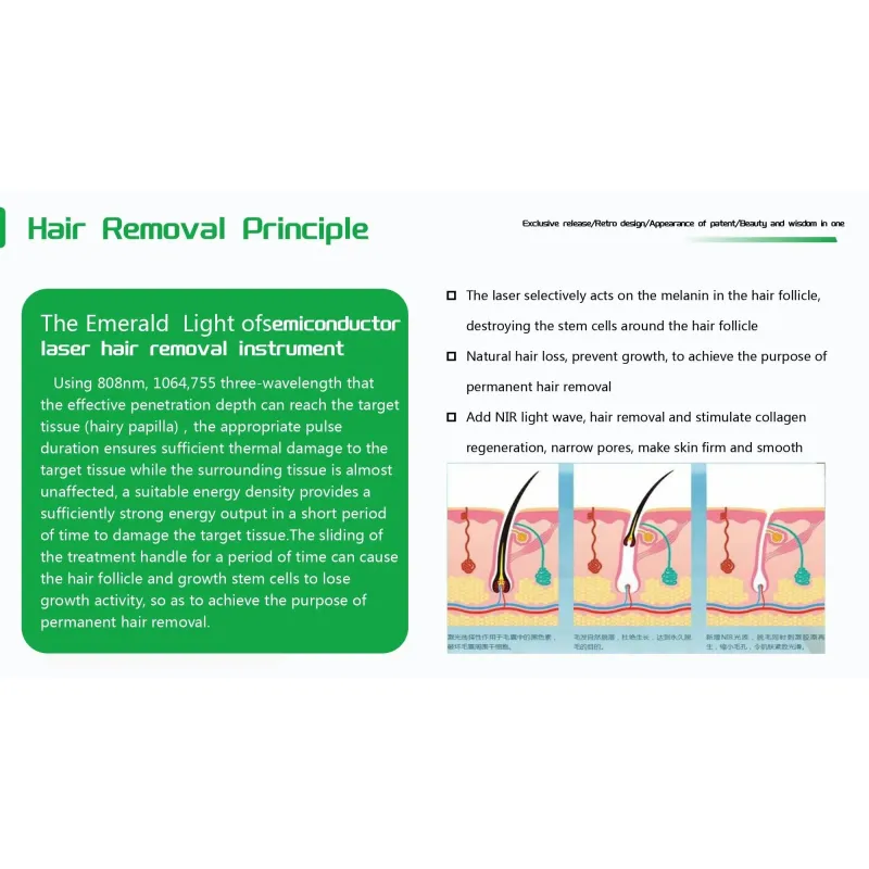 Emerald Light Diode Laser Hair Removal Device - 755nm, 808nm, 1064nm Triple Wavelength Non-Invasive Hair Removal Machine