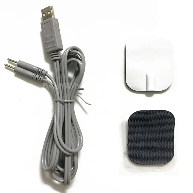 Haihua USB Banana Plug 1 to 2 Conductive Electrode Pads with Silicone Gel, 6x4.5cm - Safe & Reusable Electrodes for TENS Units