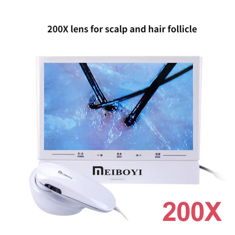 This versatile device is equipped with a 200X lens for detailed scalp and hair follicle analysis and a 50X lens for skin examination. It offers a resolution of 1280*1080, ensuring high-definition visuals for accurate diagnostics. Whether you're a professional beautician or a skincare enthusiast, this device is your ultimate tool for comprehensive skin and hair care.