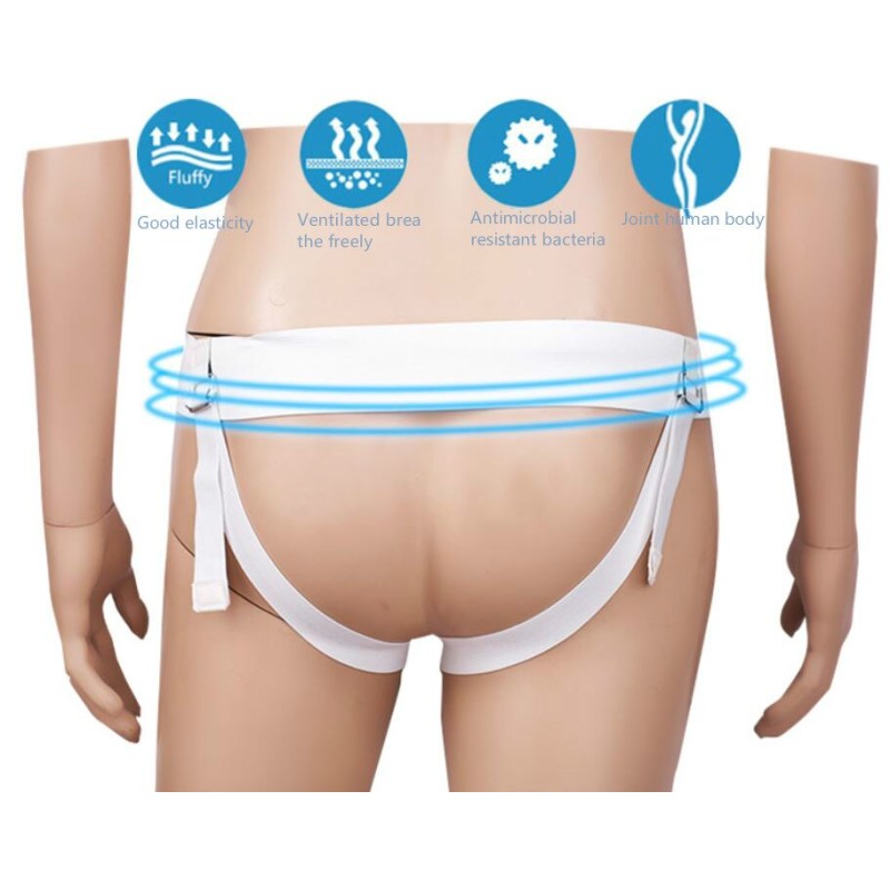 2. Align the hernia pad with the hernia ring and fasten the waistband. Adjust the tightness to ensure comfort and effectiveness.