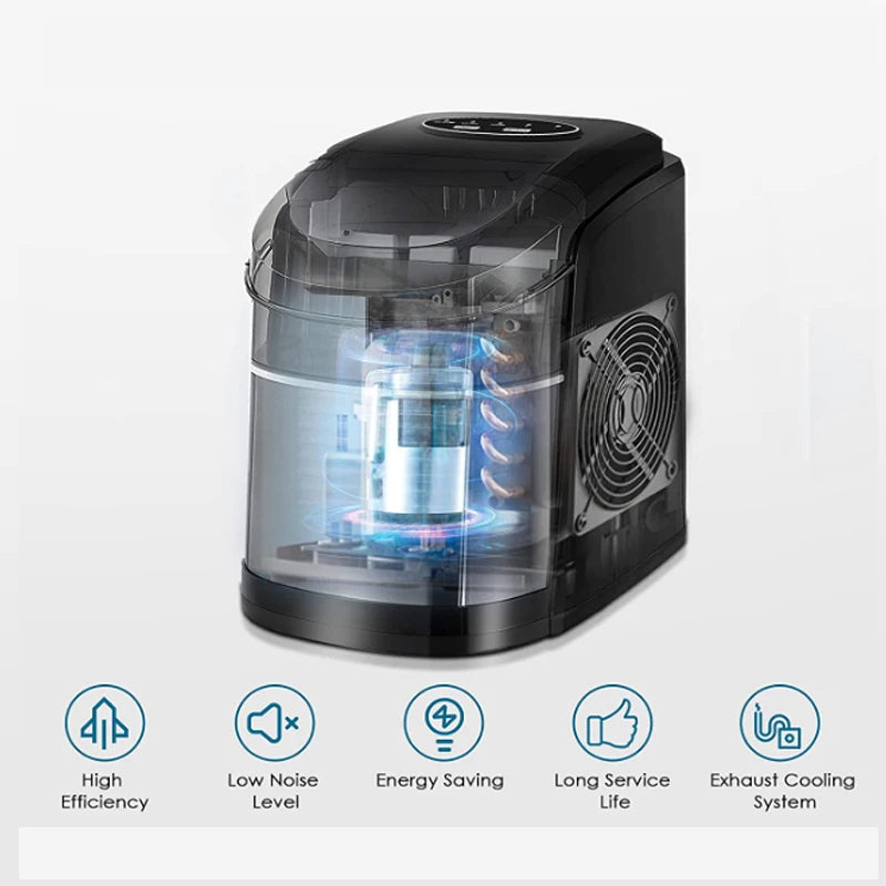 The HICON Electric Ice Maker is a high-performance, compact ice-making machine designed for both home and commercial use. With a production capacity o