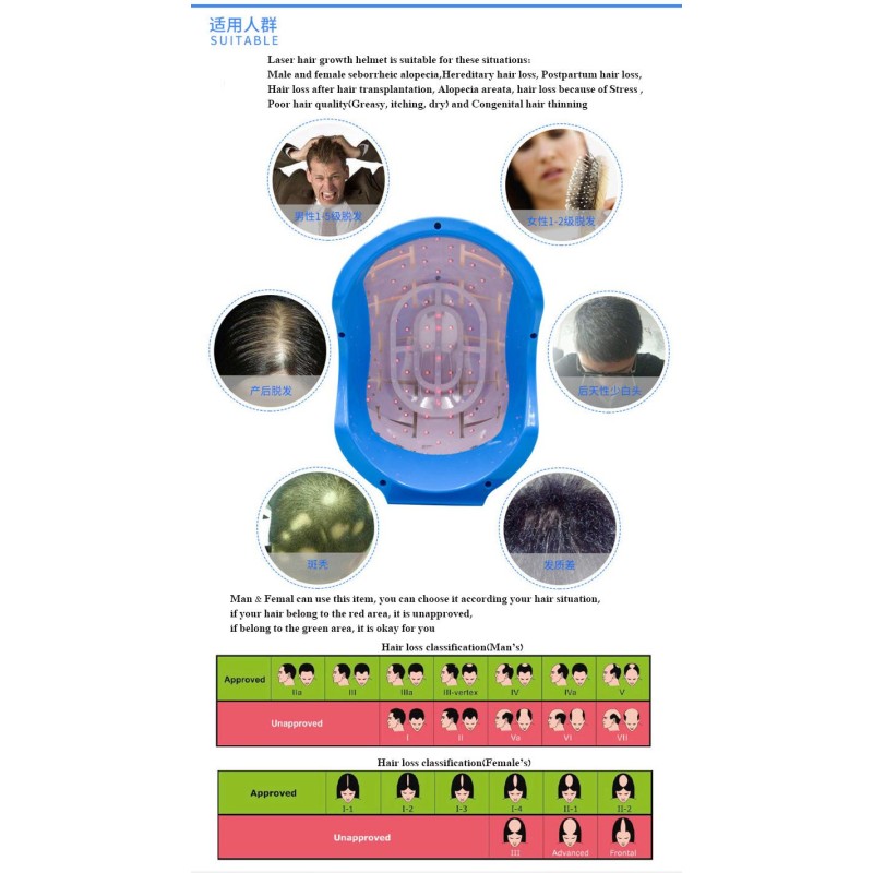 Experience the revolutionary Laser Therapy Hair Growth Helmet, designed to combat hair loss and promote hair regrowth effectively. This state-of-the-art device utilizes low-level laser therapy (LLLT) to stimulate hair follicles, enhance blood circulation, and encourage natural hair growth. Whether you're dealing with seborrheic alopecia, postpartum hair loss, or simply wish to improve hair density and volume, this helmet is your go-to solution. Trust in science and technology to restore your hair's health and vitality.