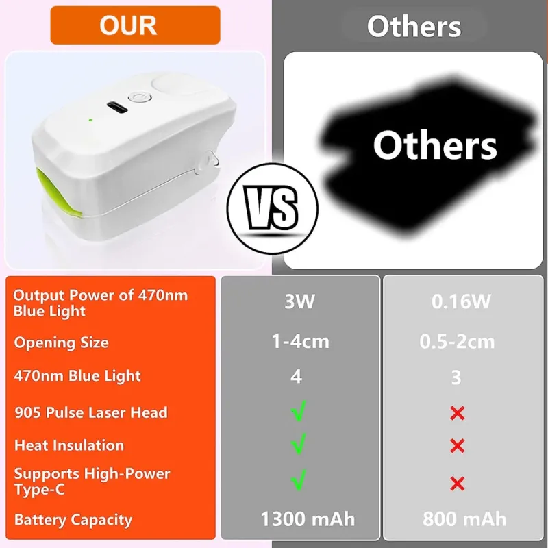 • Healthy & Efficient: Utilizes 470nm blue light and 905nm ultra-pulse invisible light for a safe and effective treatment.