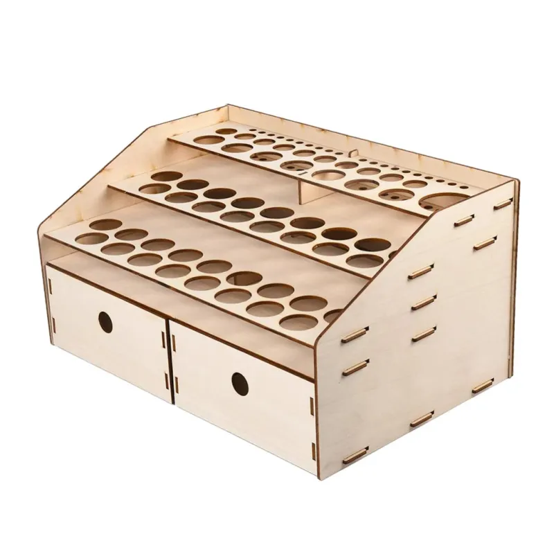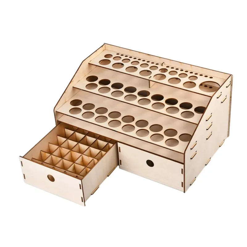 Natural Wooden Paint Bottle Rack Organizer - Acrylics Paint Storage Stand for Hobby & Art Supplies, 36x24x18.5cm