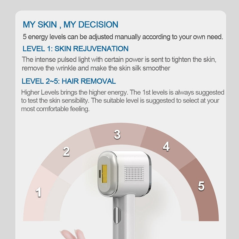 - Smart Skin Color Recognition: Automatically adjusts the light output based on your skin tone, ensuring optimal results without skin damage.