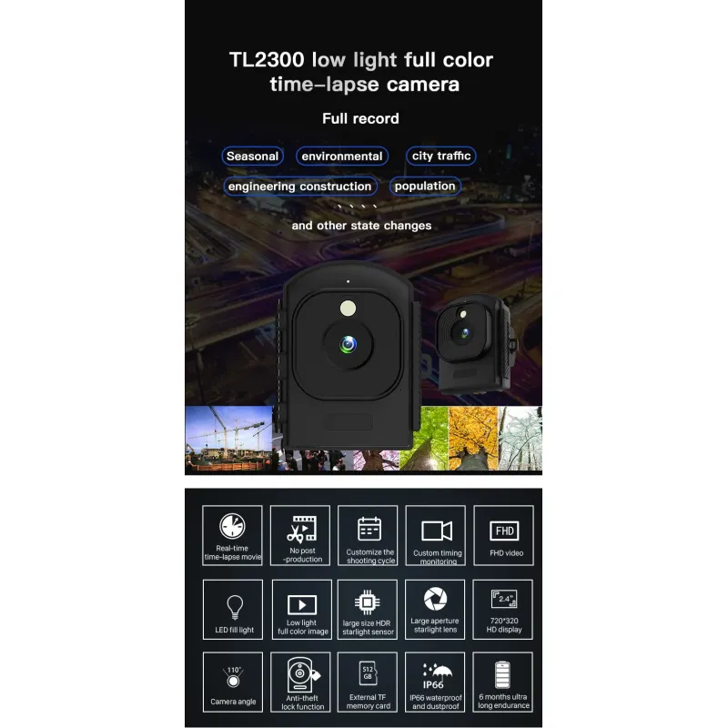 Capture stunning time-lapse videos in full 1080P HD with the Outdoor Time Lapse Camera TL2300. Designed for outdoor enthusiasts, this camera is perfect for capturing everything from plant growth to security monitoring. Its robust IP66 rating ensures it can withstand harsh weather conditions, making it ideal for outdoor use.