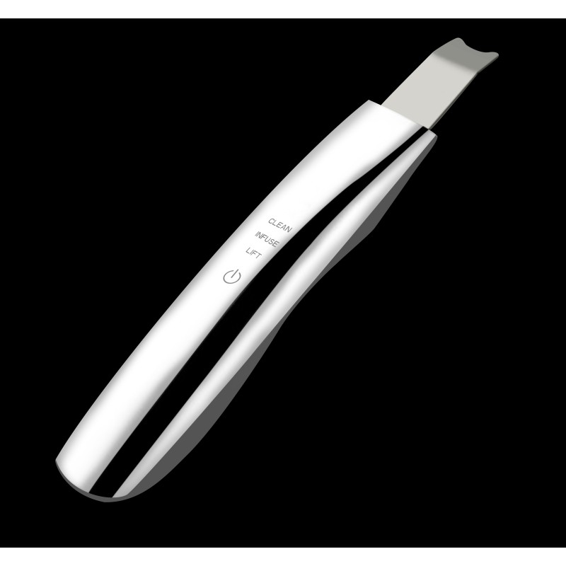 HOW DOES IT WORK? The Ultrasonic Skin Scrubber employs high-frequency vibrations to massage and lift the skin, effectively unclogging pores and improving blood circulation. The device also features Electrical Muscle Stimulation (EMS) properties, which help in skin tightening and lifting, giving you a firmer and more youthful appearance.