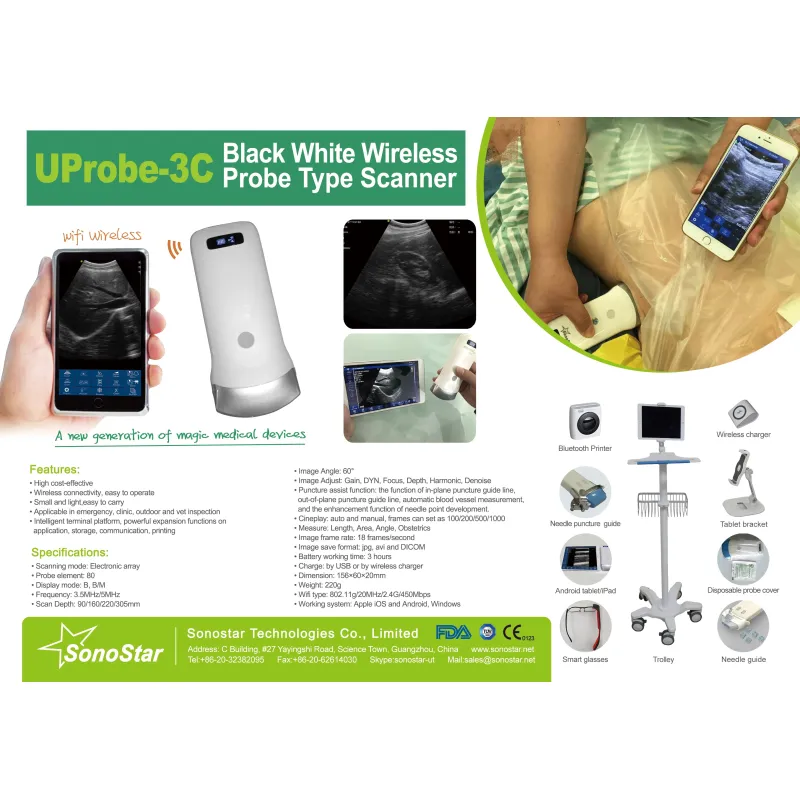Wireless Ultrasound Probe - Portable WIFI Scanner with Convex/Linear Probes, 3.5Mhz/7.5Mhz, ISO & Android Support
