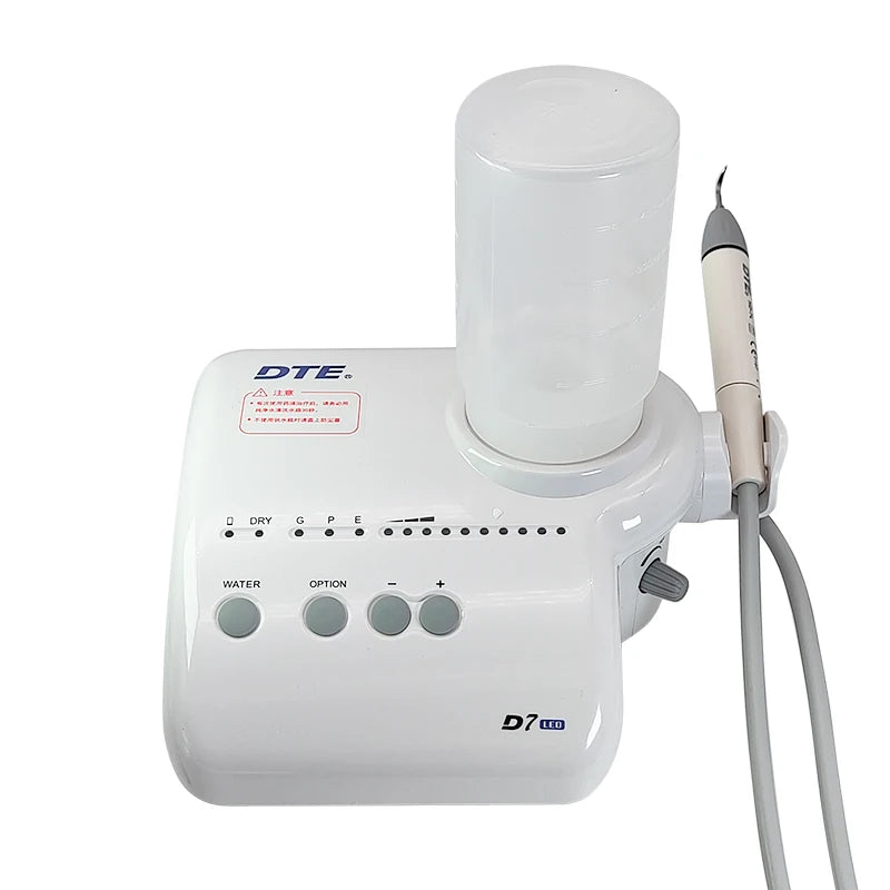 The Woodpecker DTE D7 Dental Ultrasonic Scaler is a state-of-the-art dental tool designed for efficient tartar removal and root canal cleaning. Equipped with an LED handle and an automatic water supply system, this scaler ensures precise and comfortable dental procedures. Its advanced features make it an indispensable tool for dental professionals aiming to provide top-notch oral care.