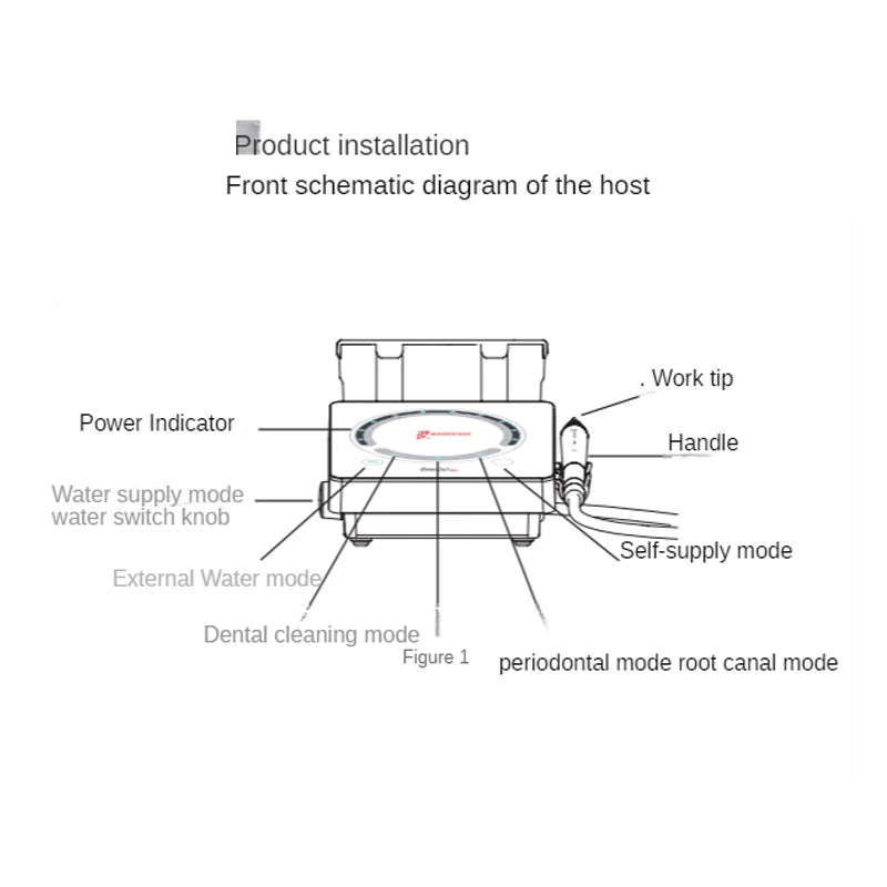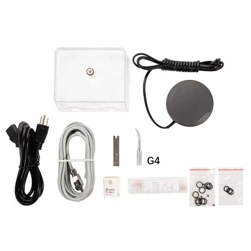 The Woodpecker U600 LED Ultrasonic Scaler is a state-of-the-art dental tool designed for efficient tartar removal and root canal cleaning. This advanced device features an automatic water supply system that can utilize hydrogen peroxide, sodium hypochlorite, and chlorhexidine to enhance clinical treatment outcomes. The handle is equipped with an LED light, providing better visibility during procedures. The device employs an automatic frequency tracking system to ensure optimal performance and stability. Controlled by a microcomputer, it offers a user-friendly interface and high operational efficiency. The working handle is designed for easy insertion and removal and can withstand high-temperature sterilization at 134°C and high pressure at 0.22MPa.
