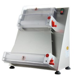 Kereskedelmi elektromos pizza tésztahenger gép - 6-15 hüvelykes félautomata pizzalap, rozsdamentes acél, állítható vastagság [Pizza tésztahenger, pizzatálca gép]