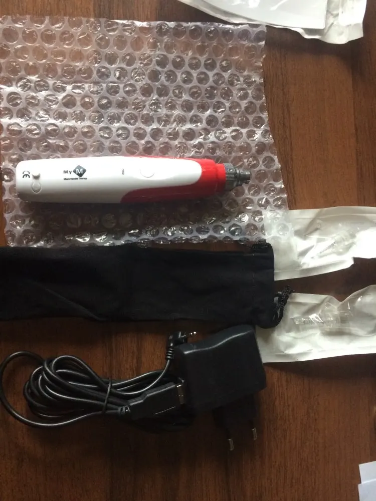 Everything came in working condition, the pen and needle cartridges are made very neat. The device allows you to choose one of the five working speeds and set the extension of the needles from 0,25 to 2mm. Packed very well-made like a box of inflatable "Mattress". |