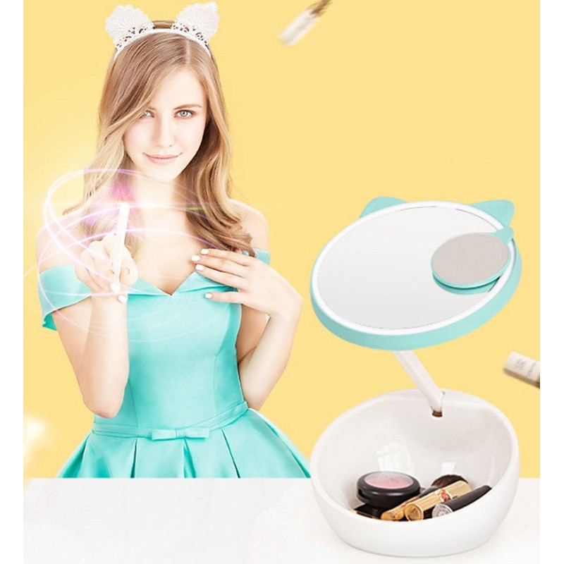 3배 확대, 사랑스러운 반려동물 모양, 창의적인 보관, 야간 조명, 터치 컨트롤, 충전식 LED 조명 메이크업 거울
