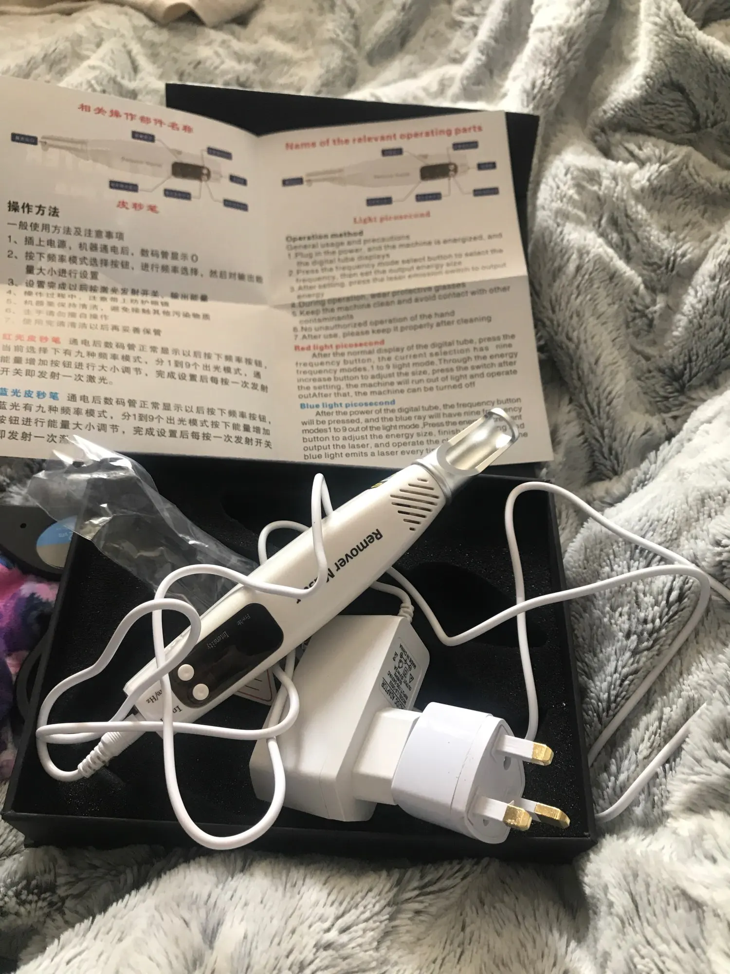 Took only 6 days to come which is amazing! I have had lots of professional laser tattoo removal on other tattoos I have but it’s so expensive. I have a tattoo on my wrist I really want to remove. I’ve just done one quick treatment on it at level 3 as I was nervous and it feel like it’s working, similar to the other treatments I’ve had. Sore so don’t go too high at first but fingers crossed this works! I’ve put collagen gel on mine and might wrap it too. Best thing I’ve ever bought if it works which hopefully it will. |
