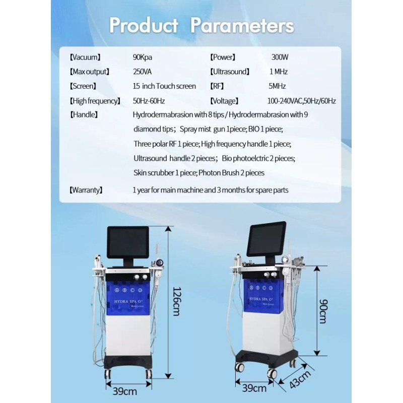 - 14-in-1 multifunctionaliteit : combineert zuurstoftherapie, diamantdermabrasie, diepe reiniging en meer voor een uitgebreide huidverzorging.