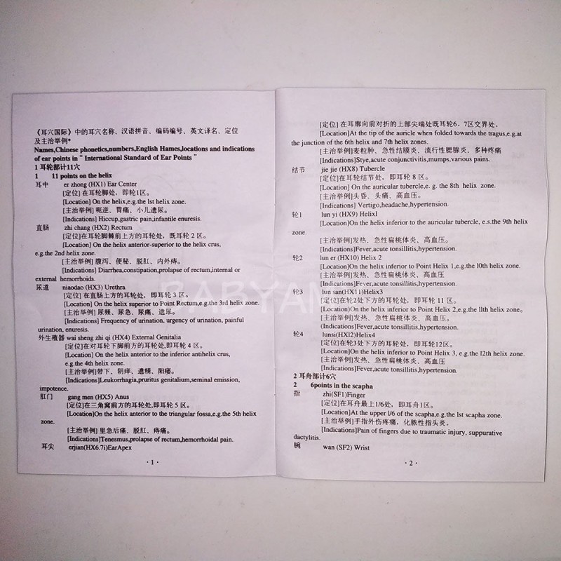 - Gedetailleerde referentietabel: Bevat een uitgebreide gids met veelvoorkomende acupunctuurpunten, ter verbetering van uw begrip en praktijk.