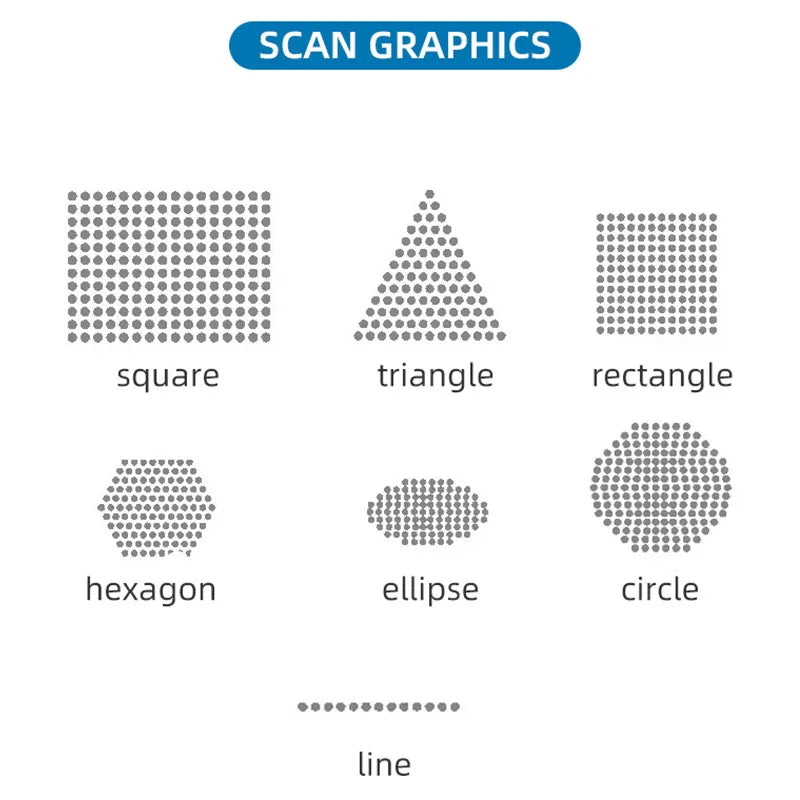 - Modi: Dot Matrix Laser, Private Laser, Hoge Energie Puls