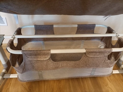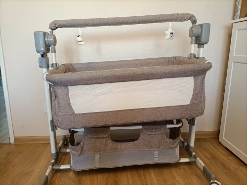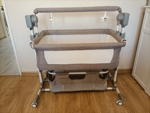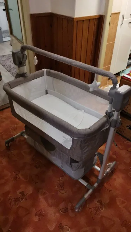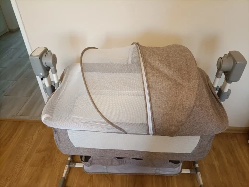 The khaki colored crib is beautiful, comfortable, and practical, and can be controlled using a remote control. Overall, it is very convenient |