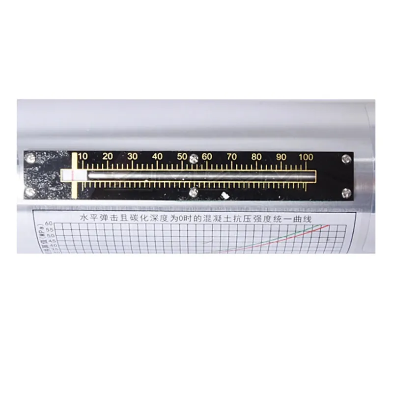 De HT-225 Concrete Rebound Test Hammer is een ultramoderne draagbare Schmidt-hamer die is ontworpen voor nauwkeurige en efficiënte tests van de druksterkte van beton. Deze rebound-hamer is gebouwd met een behuizing van hoog polymeermateriaal en superhard aluminium en garandeert duurzaamheid en een lange levensduur. De middelste geleidestang is gemaakt van hoogwaardige geïmporteerde materialen, wat de precisie en betrouwbaarheid van het apparaat verbetert. Met zijn externe veerspiraalstructuur zorgt de aanwijzerschuif voor eenvoudige wrijvingsaanpassing, wat zorgt voor consistente en nauwkeurige metingen.