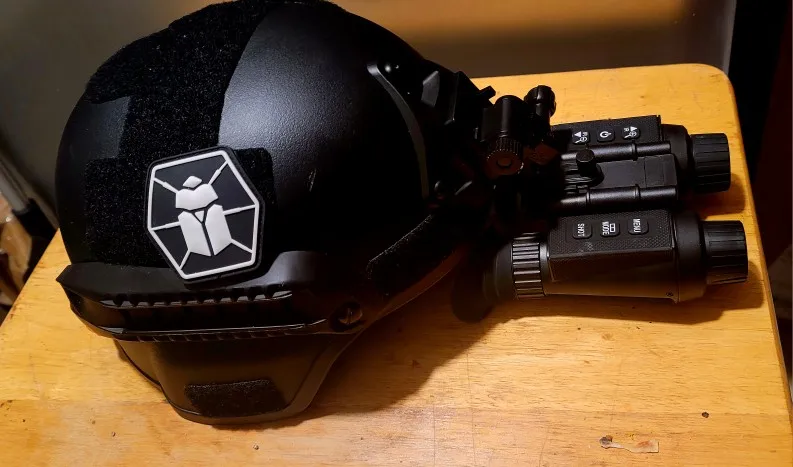 4. Het product is klein van formaat, licht in gewicht en kan op verschillende draagbare manieren worden gebruikt. Het heeft een band die om de nek hangt, een band voor draagbare hoofddeksels en een tactische helm voor hoofddeksels