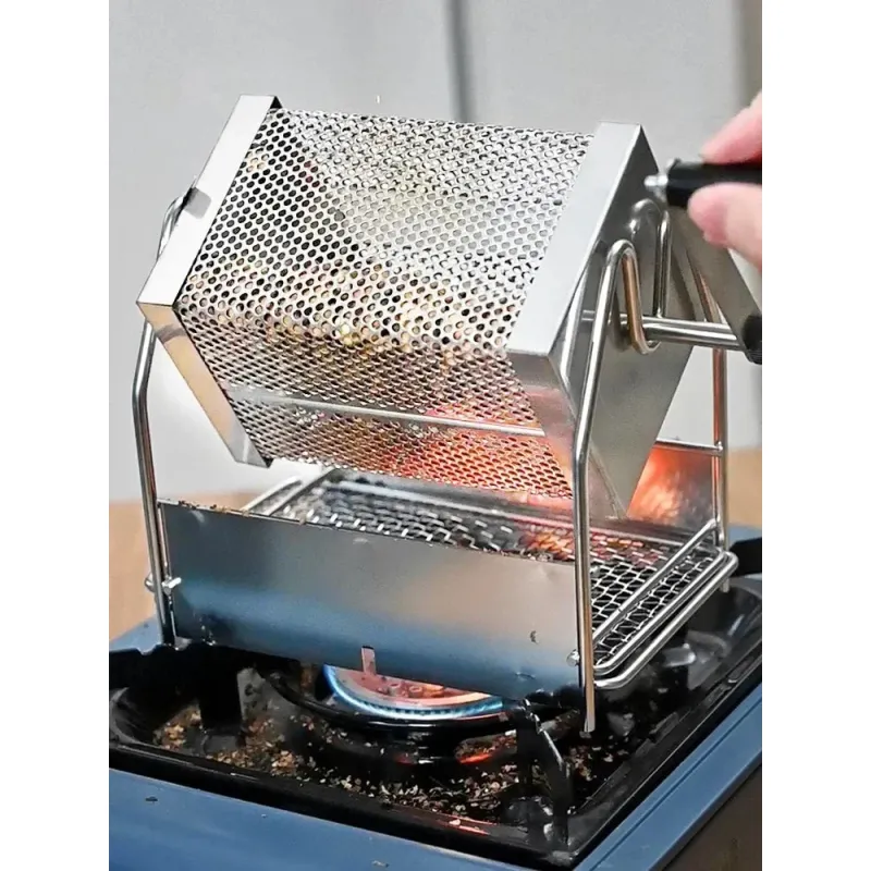 Ervaar de kunst van het branden van koffie thuis met onze roestvrijstalen handbediende koffiebonenbrander. Deze brander is ontworpen voor verwarming met open vuur en is perfect voor gebruik buitenshuis en verschillende doe-het-zelf bakprojecten. Met een capaciteit van ongeveer 200 g rauwe bonen kunt u uw koffiebonen branden tot de gewenste mate van branding. De handmatige rotatie zorgt voor gelijkmatig branden en nauwkeurige controle over het brandproces. Deze brander is gemaakt van hoogwaardig roestvrij staal en brengt efficiënt warmte over op de bonen, wat elke keer zorgt voor een perfecte branding.
