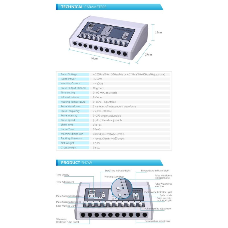 Ervaar de ultieme spierstimulatie en pijnverlichting met de Tens Hot Machine Professional Far Infrared Heat Russian Wave Electric Muscle Stimulator. Deze geavanceerde EMS-machine is ontworpen voor zowel thuis- als salongebruik en combineert verre infraroodwarmte met Russian Wave-technologie om ongeëvenaarde resultaten te leveren op het gebied van gewichtsverlies, spierversteviging en pijnbeheersing.