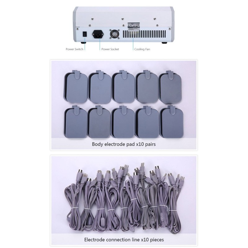 - 10 groepen elektropads: Uitgerust met 10 paar hooggeleidende siliconen gel-elektrodepads voor uitgebreide spierstimulatie.