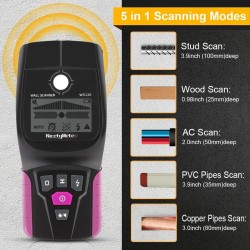 Nicetymeter WS120 Muurscanner Sensor - 5-in-1 Elektronische Stud Met LCD-scherm en Audio Alarm Voor ..