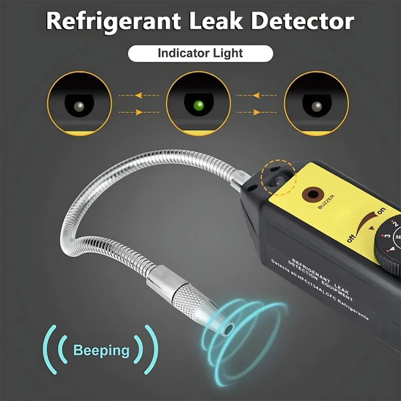 - Wielofunkcyjny czujnik gazu: umożliwia wykrywanie szerokiej gamy gazów chłodniczych, w tym R22, R410A, R134A, R1234YF, CFC, HCFC i HFC.