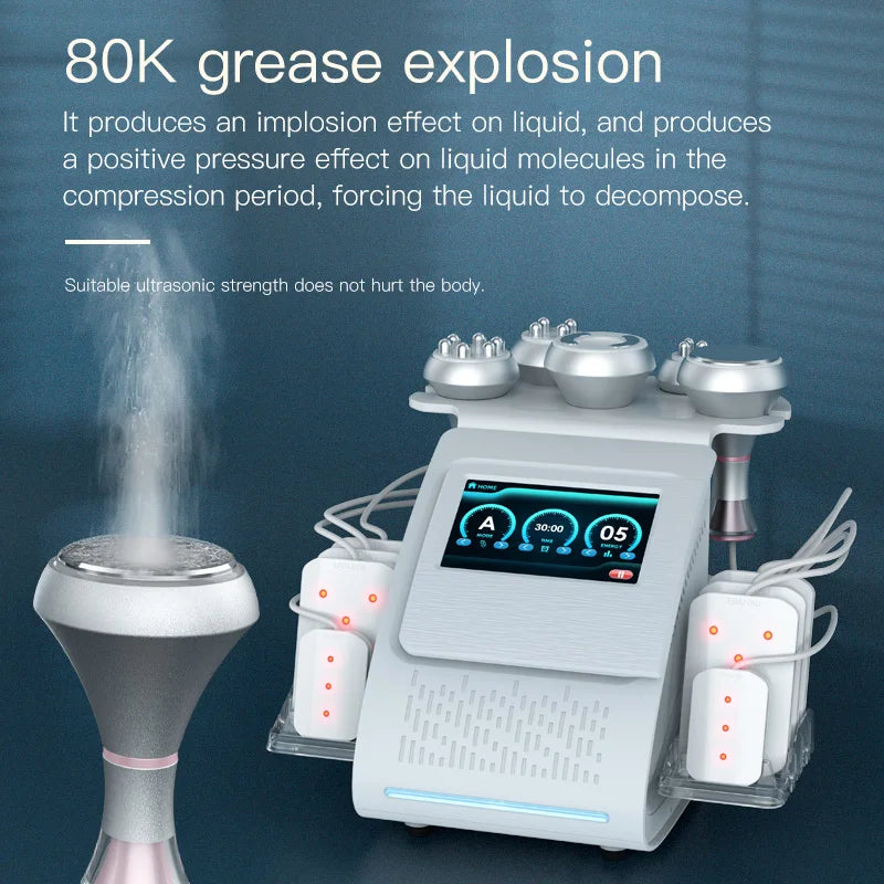 Introducing the 2023 6-in-1 80k Ultrasonic Cavitation Vacuum Lipo RF Laser Weight Loss Machine, the ultimate solution for body contouring and fat reduction. This advanced machine combines six cutting-edge technologies—Ultrasonic Cavitation, Vacuum Lipo, RF (Radio Frequency), Laser, and more—to deliver professional-grade results from the comfort of your home or business. Whether you're looking to slim down, tone your body, or reduce cellulite, this machine is designed to meet all your weight loss and beauty needs.