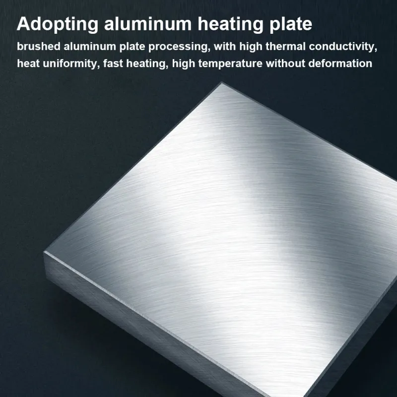 • Premium Aluminum Heating Plate: Crafted from brushed aluminum, the plate offers high thermal conductivity, ensuring fast and even heating up to 400℃ without deformation.