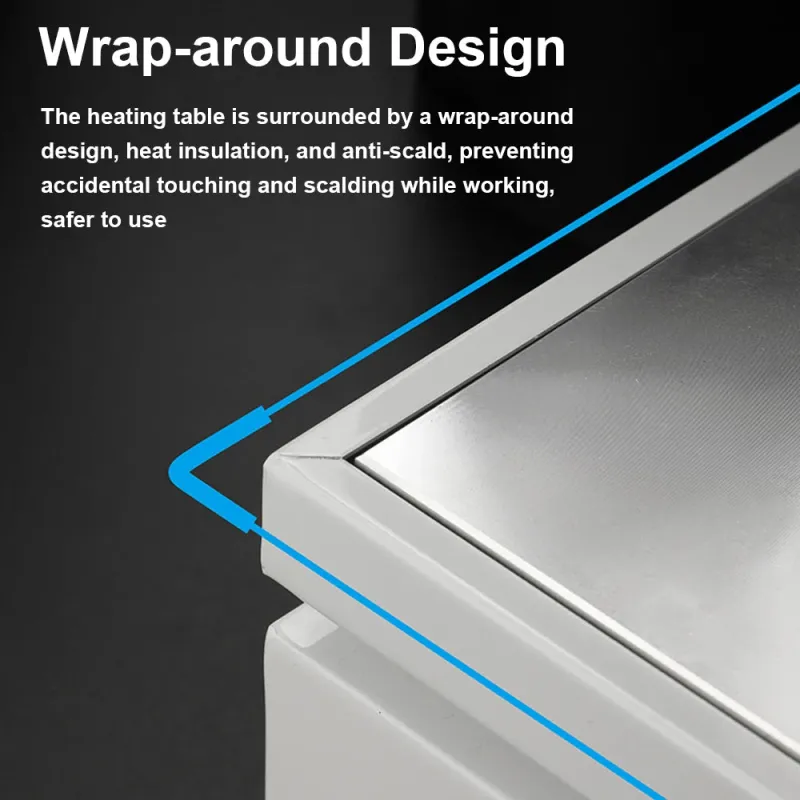 • Wrap-around Safety Design: The heating table features a wrap-around design with heat insulation, preventing accidental burns and ensuring safe operation.