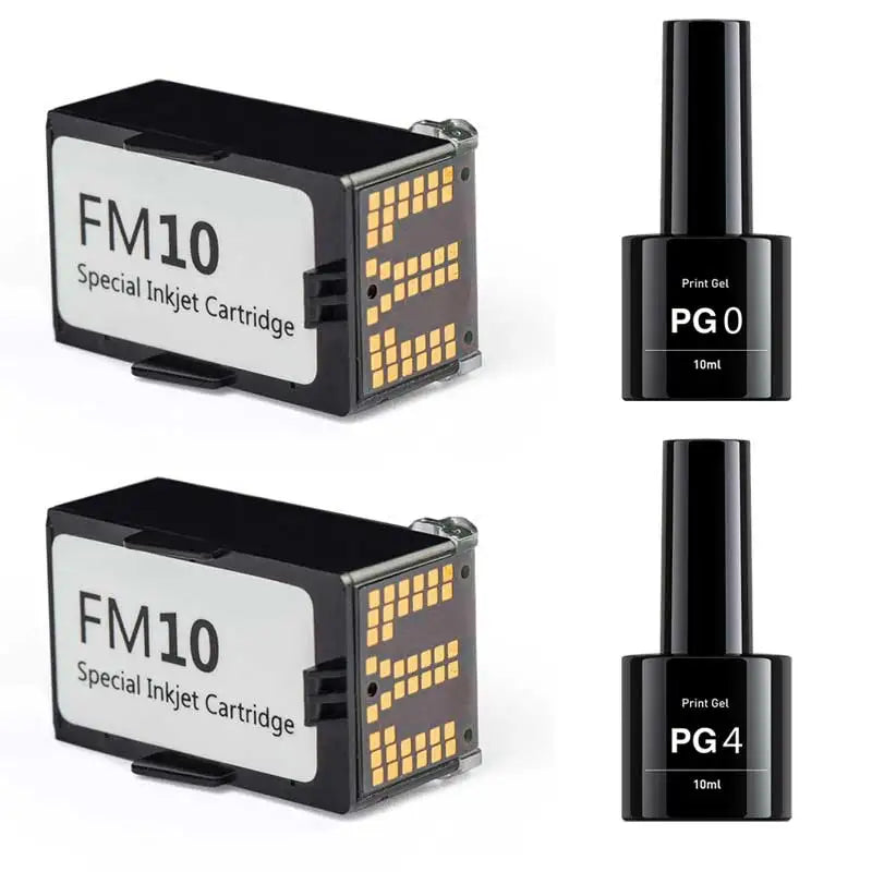 Our combination set includes not only the FM10 ink cartridge but also essential printer gels: PG4, PG0, NM Nail Mask, Top Gel, and Base Gel. Each of these gels is designed to complement the ink cartridge, ensuring a seamless and high-quality nail printing experience. The consumables in this set are offered in a discounted combination package, making it a cost-effective choice for your nail art needs.