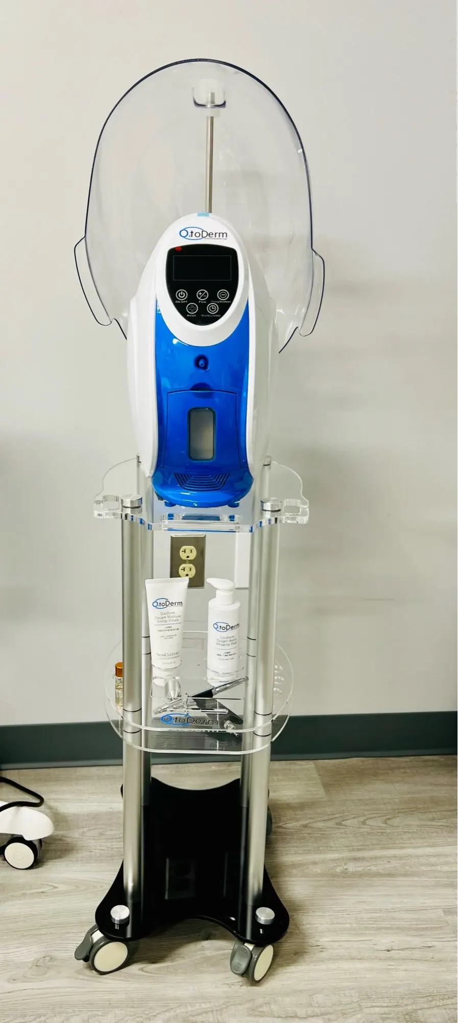 Discover the revolutionary O2toDerm Oxygen Jet Facial Dome Machine, an advanced hyperbaric anion oxygen system designed to transform your skincare routine. This cutting-edge device converts natural air into up to 92% pure oxygen, delivering it through a dome-shaped mask within a hyperbaric-like chamber. The O2toDerm system generates anions (negative ions) at a level 3 million times higher than natural production, akin to the vitamins found in the air of a deep forest. These anions play a crucial role in stabilizing free radicals, promoting cell regeneration, reducing bacteria, rebalancing pH levels, and improving signs of aging while healing damaged cells.